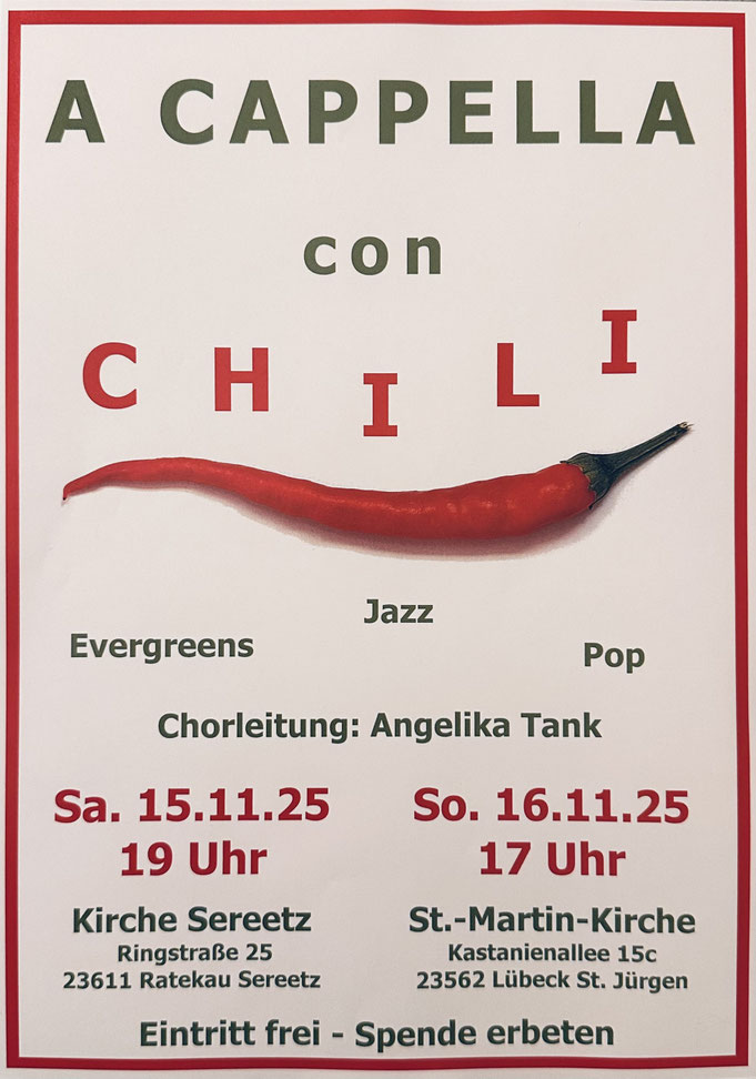 einmal die Woche live und in Farbe in Lübeck oder über chilies@web.de
